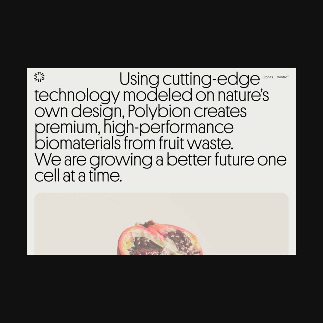 0429 polybion.bio Production, Big Images, Big Title, Big Typography, Clean, Colorful, Creative Layout, Custom Scroll, Large Scale, Light, One Page, Playful, Scroll Events, White Space, Gray, White, Mexico, Spain. Design: Twoo. Development: Twoo. (07-04-2022) ←Close