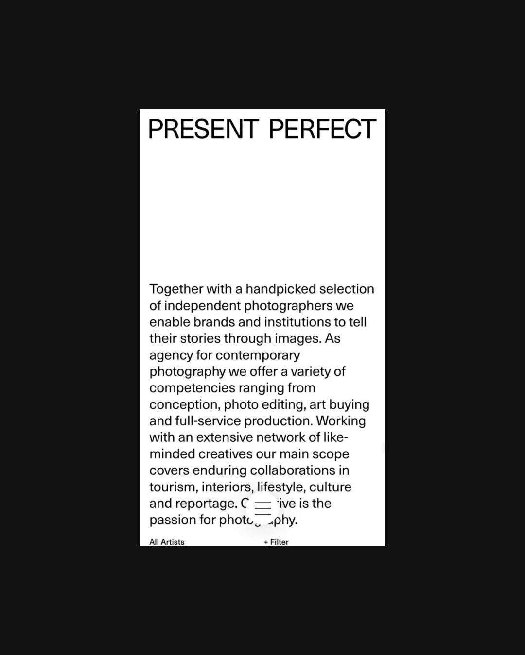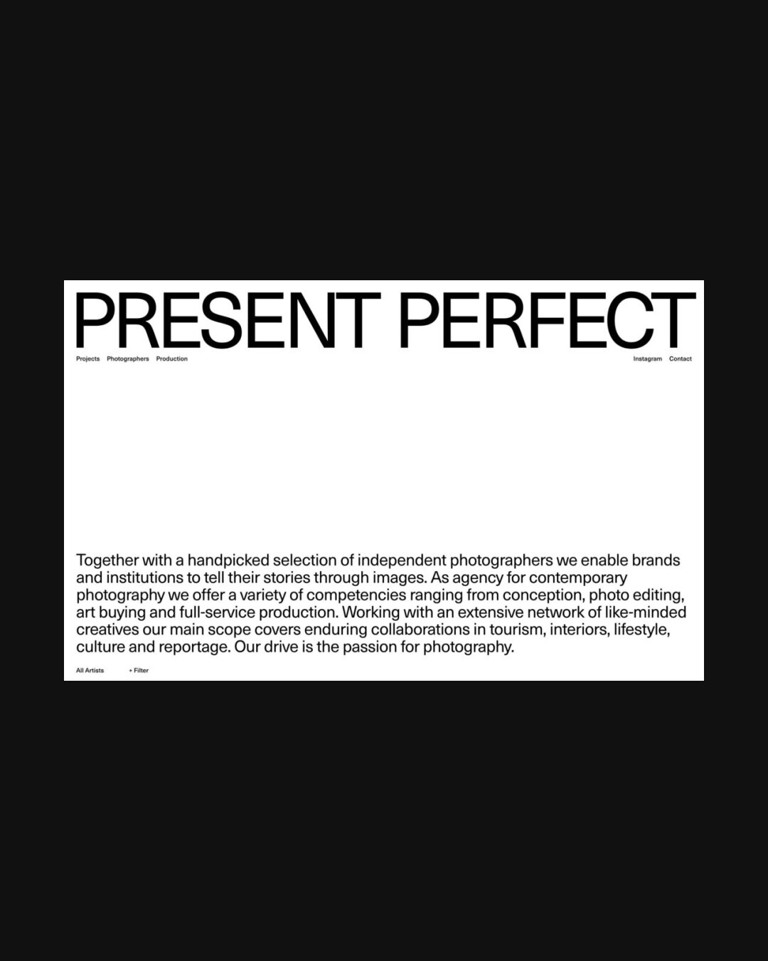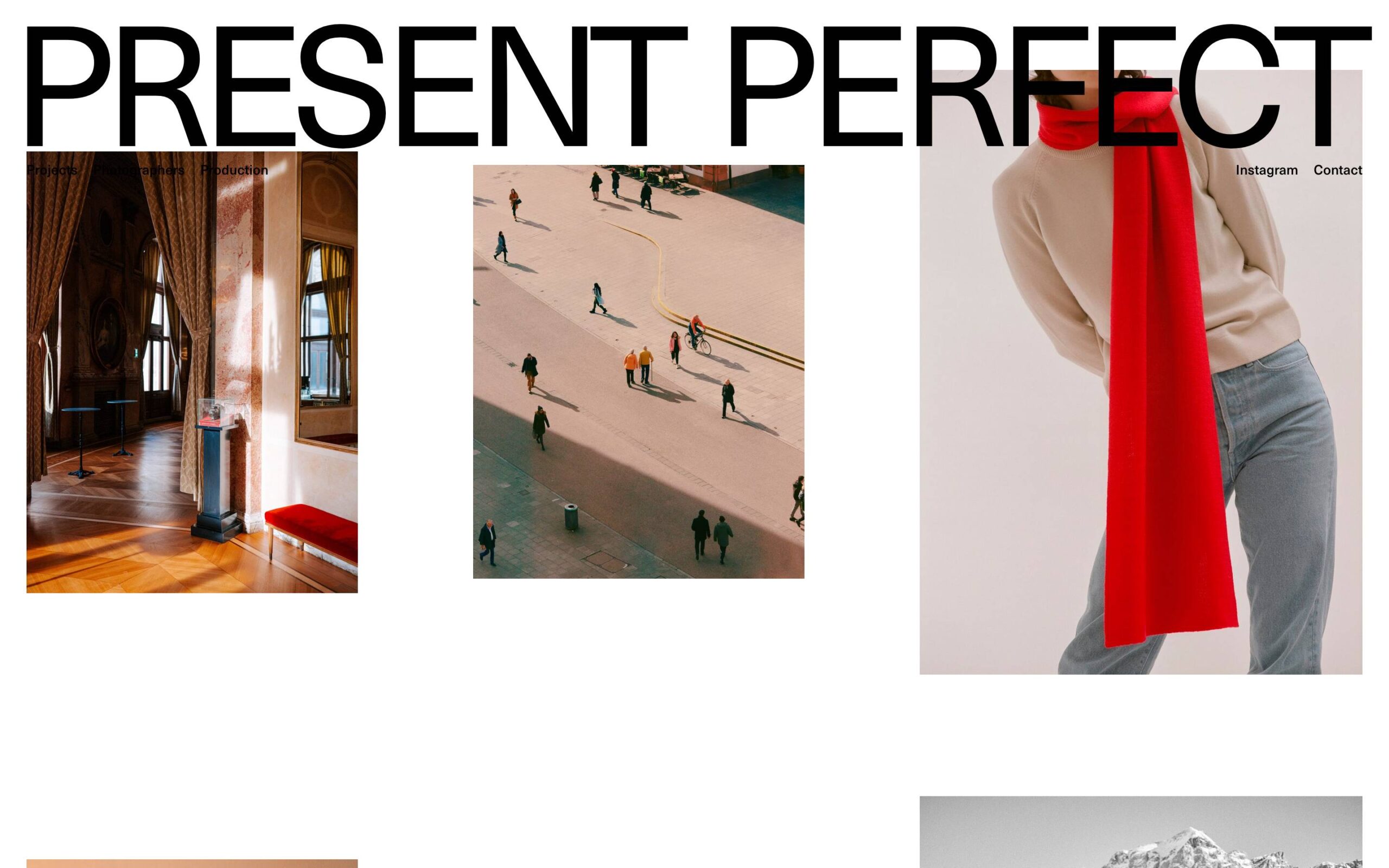 0299 presentperfect.productions Production, Big Title, Big Typography, Light, Scroll Events, Typographic, White Space, Black, White, Austria. Design: Studio Es. Development: Studio Es. (02-09-2021) ←Close
