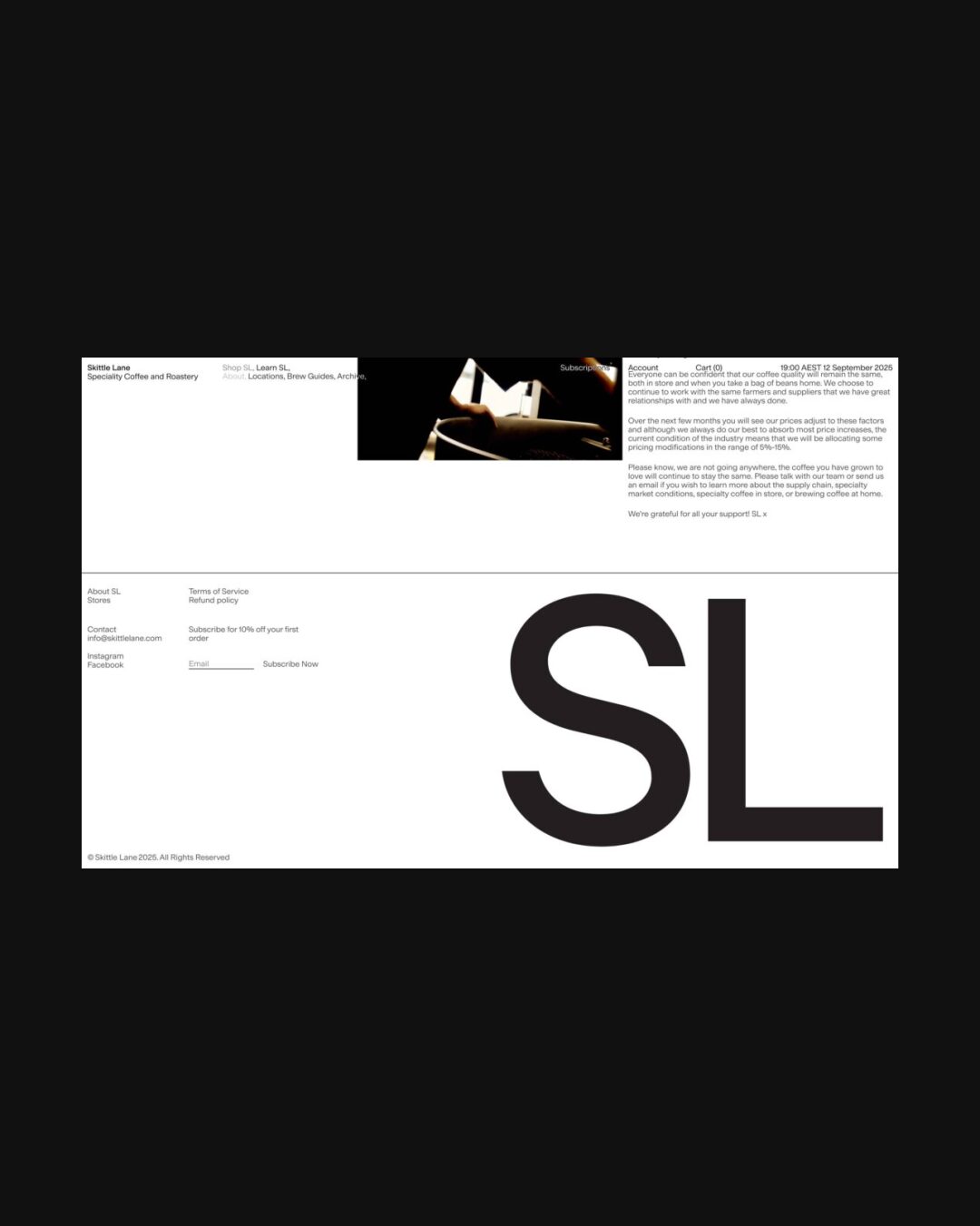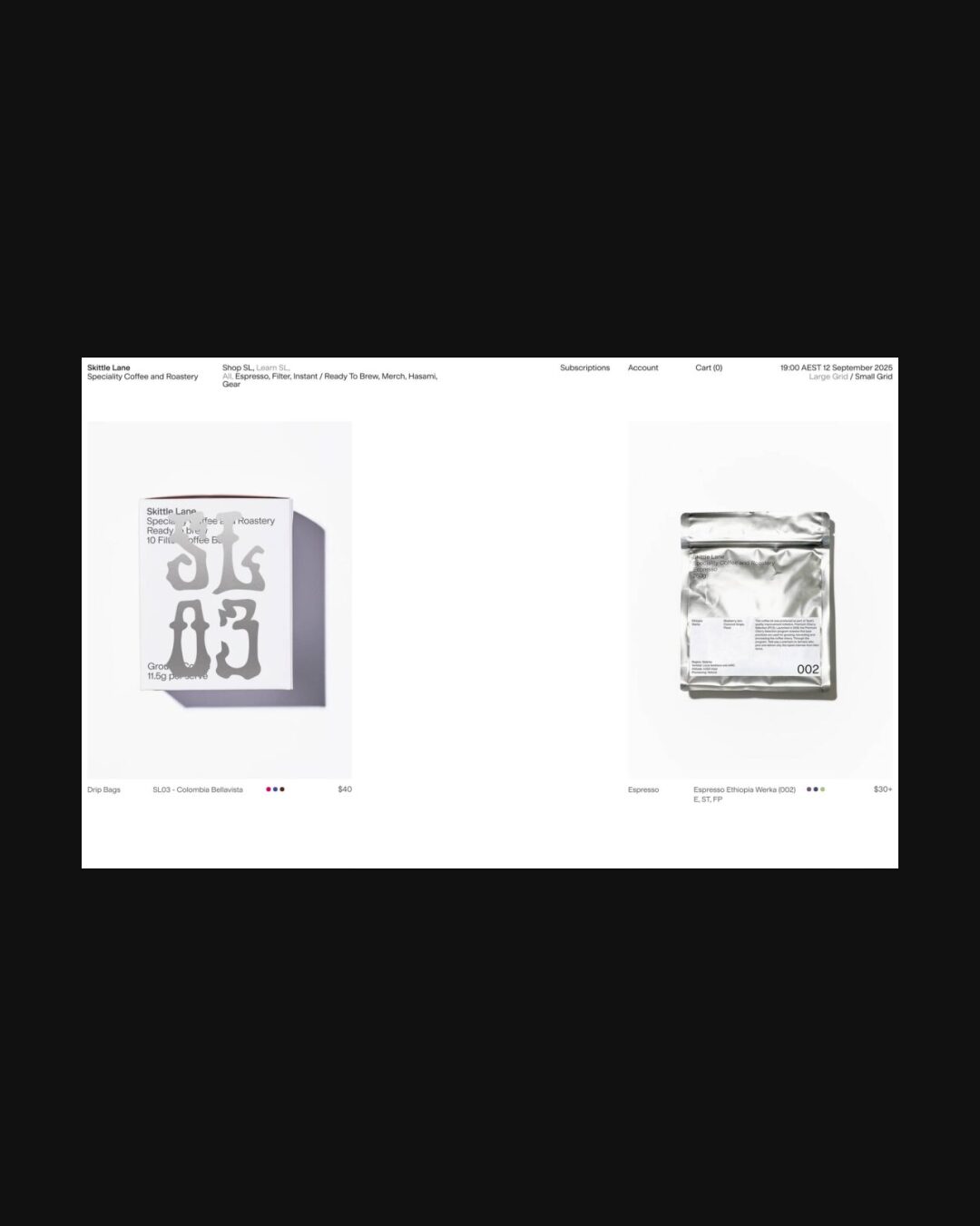 1169 skittlelane.com Coffee Brewer, Big Title, Bright, Clean, Grid, Large Scale, Light, Minimal, Sans Serif Typeface, Simple, Small Typography, White Space, Black, Chocolate, Australia. Design: Scco. Development: Sasha Burger. (12-09-2025) ←Close