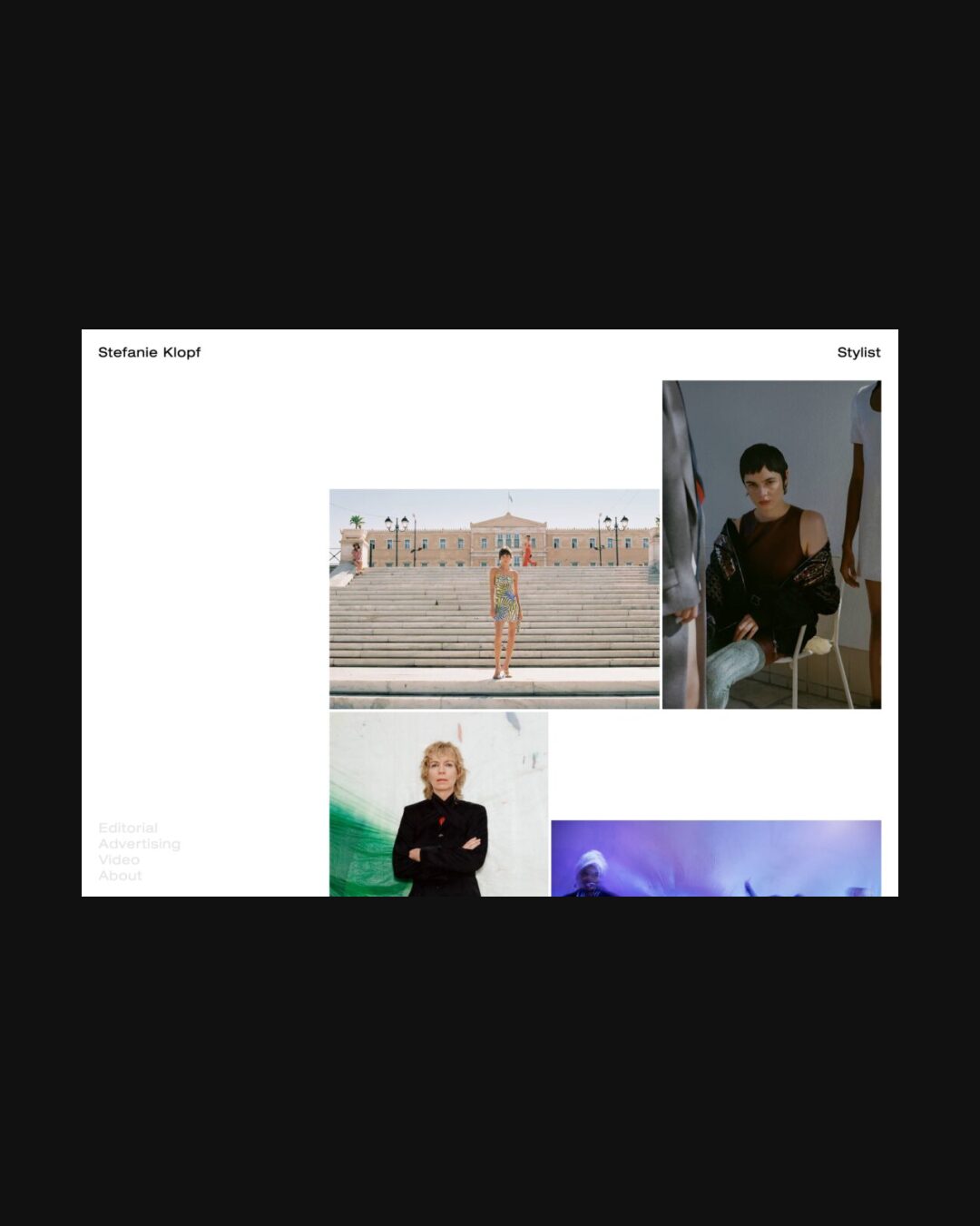 0202 stefanieklopf.com Fashion, Big Images, Big Typography, Clean, Grid, Light, Playful, White Space, Gray, White, Germany. Design: HelloMe. Development: Armin Unruh. (02-08-2019) ←Close