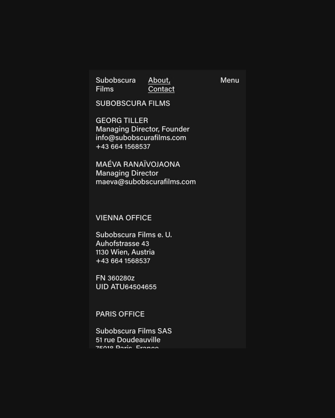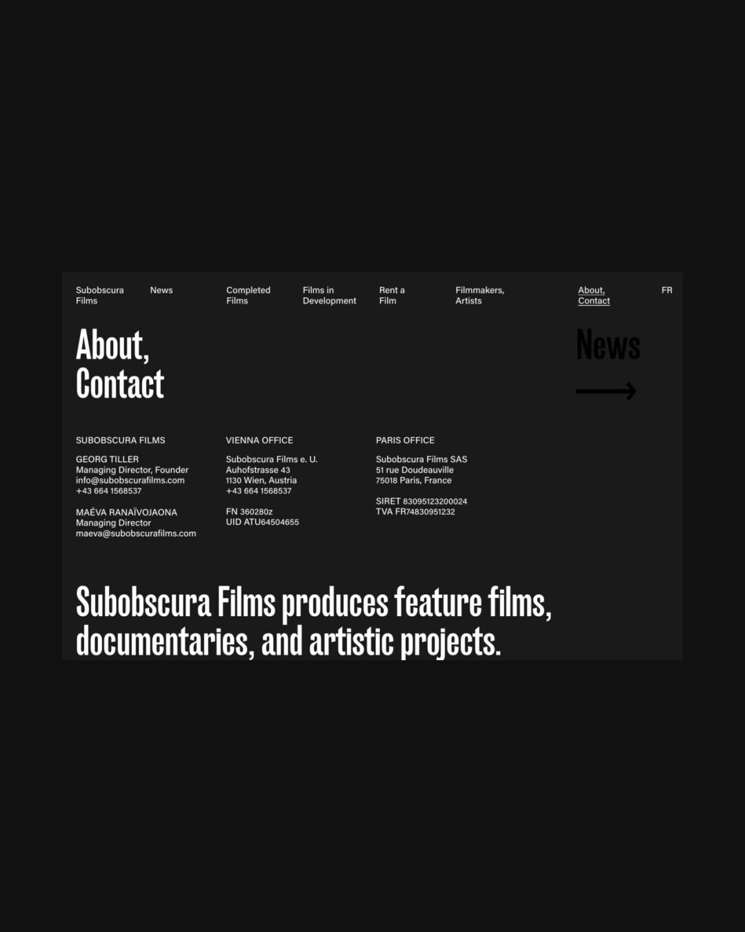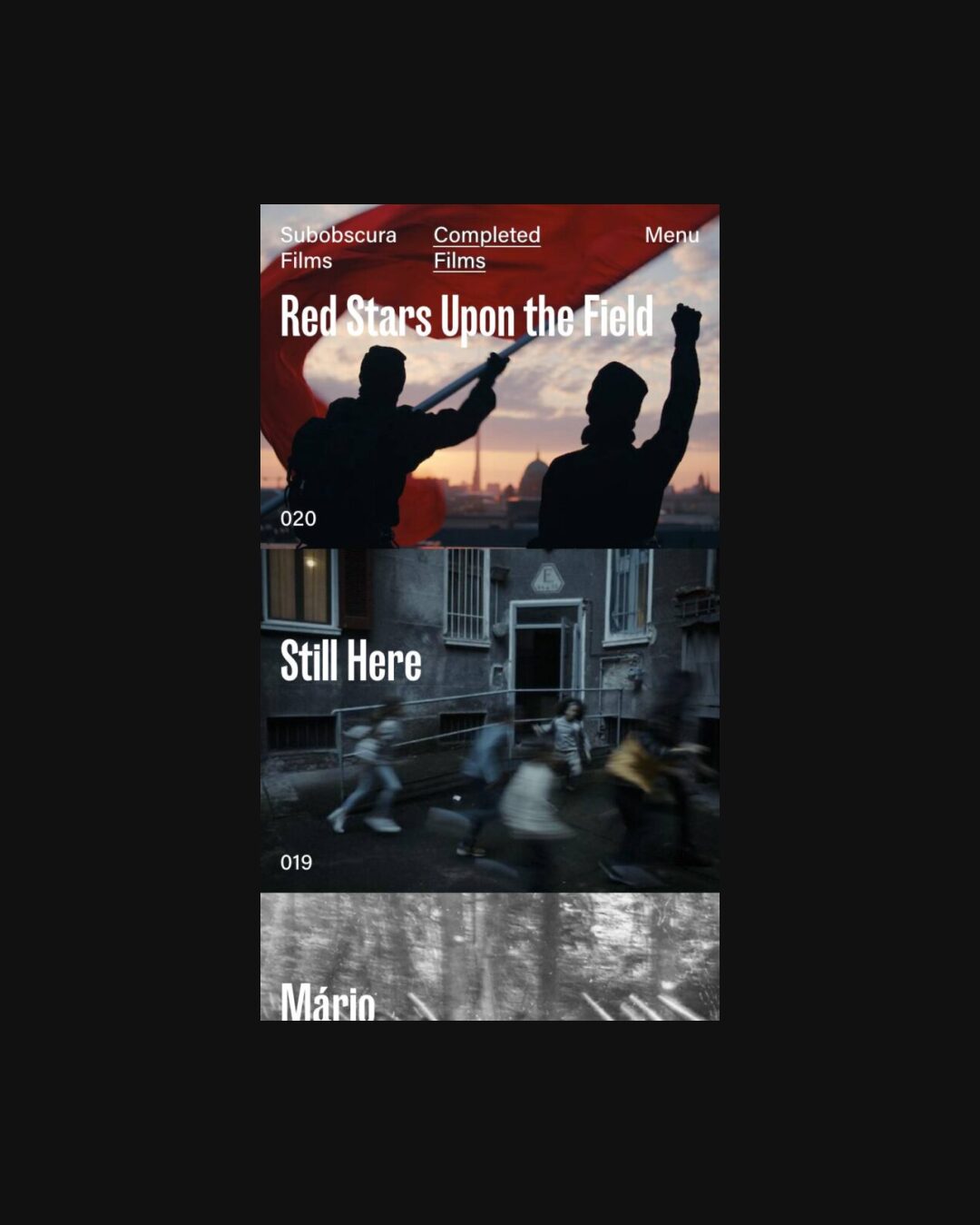 0296 subobscurafilms.com Film, Big Images, Big Title, Big Typography, Dark, Marquee, Typographic, White Space, Black, White, Austria. Design: Bueronardin. Development: Bueronardin. (24-08-2021) ←Close
