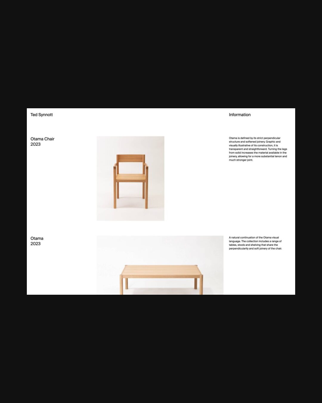 0759 tedsynnott.com Furniture, Big Title, Clean, Minimal, Simple, White Space, Pink, White, Australia. Design: Harrison Gyde. Development: Harrison Gyde. (24-11-2023) ←Close