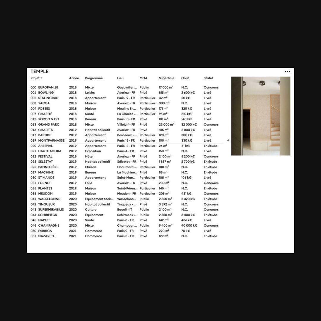 0443 temple.archi Architecture, Big Images, Big Title, Big Typography, Clean, Creative Layout, Grid, Large Scale, Light, Scroll Events, Simple, Gray, White, France. Design: Sophie Hanoun. Development: Tristan Bagot. (03-05-2022) ←Close
