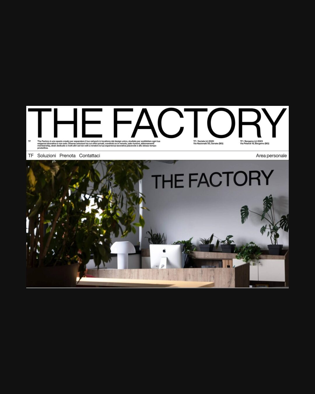 0631 thefactoryco.work Workspace, Big Title, Big Typography, Brutalist, Large Scale, Light, Black, White, Italy. Design: Atio Studio. Development: Sulture. (10-05-2023) ←Close