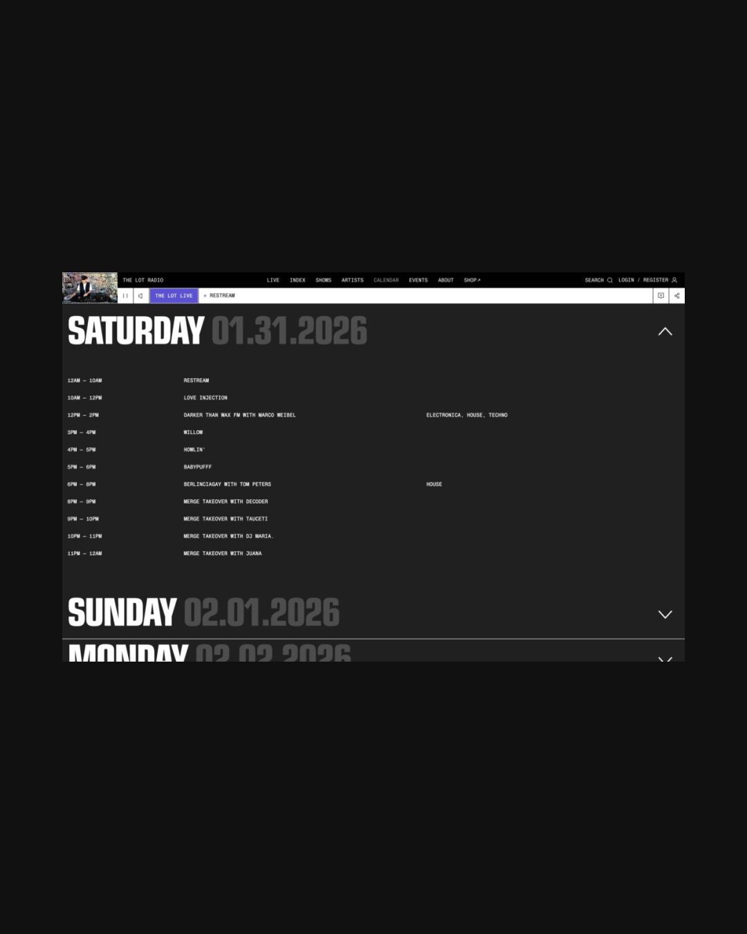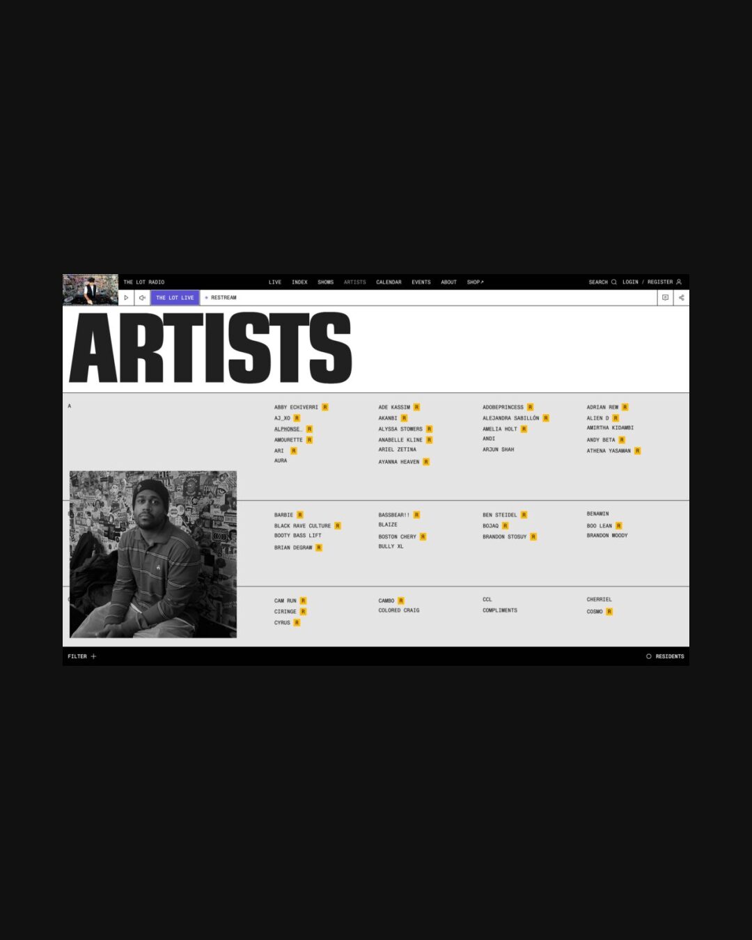 1351 thelotradio.com Radio, Big Title, Big Typography, Bold, Collage, Dark, Large Scale, Mixed Style Typefaces, Overlay Containers, Scroll Position Animation, Video, Black, Silver, USA. Design: Decimal. Development: Decimal. (30-01-2026) ←Close