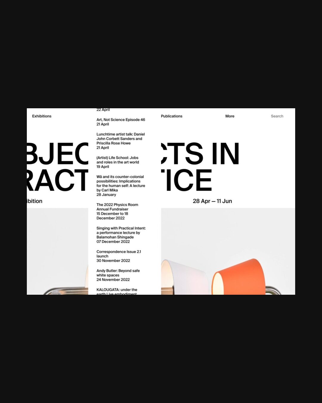 0633 physicsroom.org.nz Art, Big Title, Clean, Creative Layout, International Style, Large Scale, Light, Black, White, New Zealand. Design: Sons & Co.. Development: Sons & Co.. (12-05-2023) ←Close