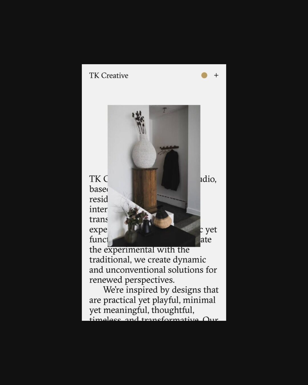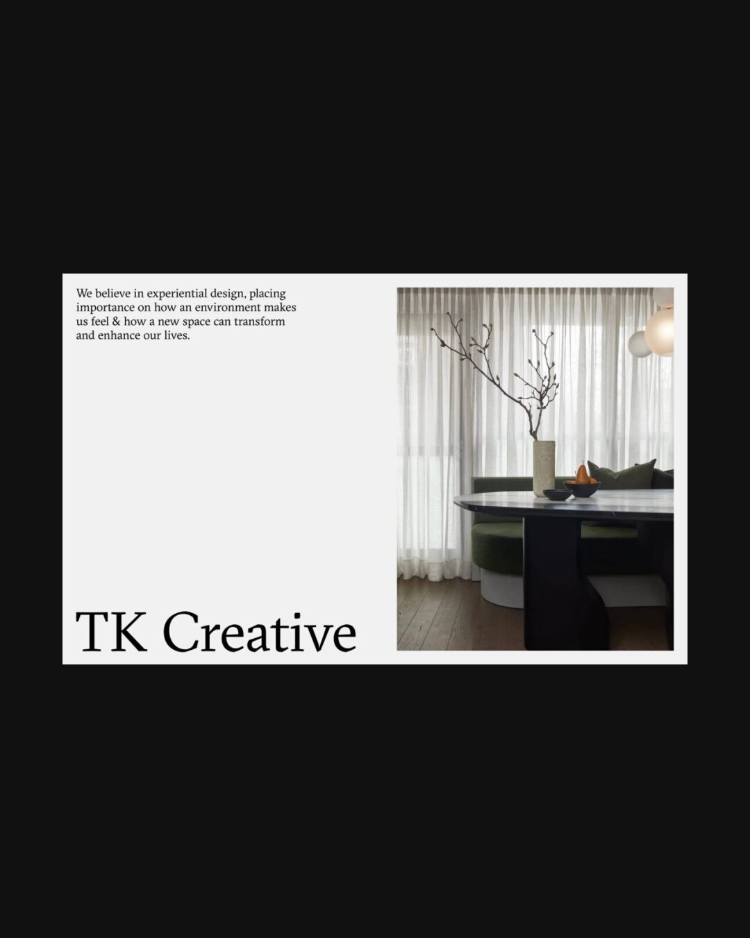 1125 tkcreative.ca Interior Design, Big Title, Big Typography, Clean, Grid, Large Scale, Light, Serif Typeface, Simple, Silver, White, Canada. Design: Rebecca Wilkinson. Development: Donald Zhu. (22-03-2025) ←Close