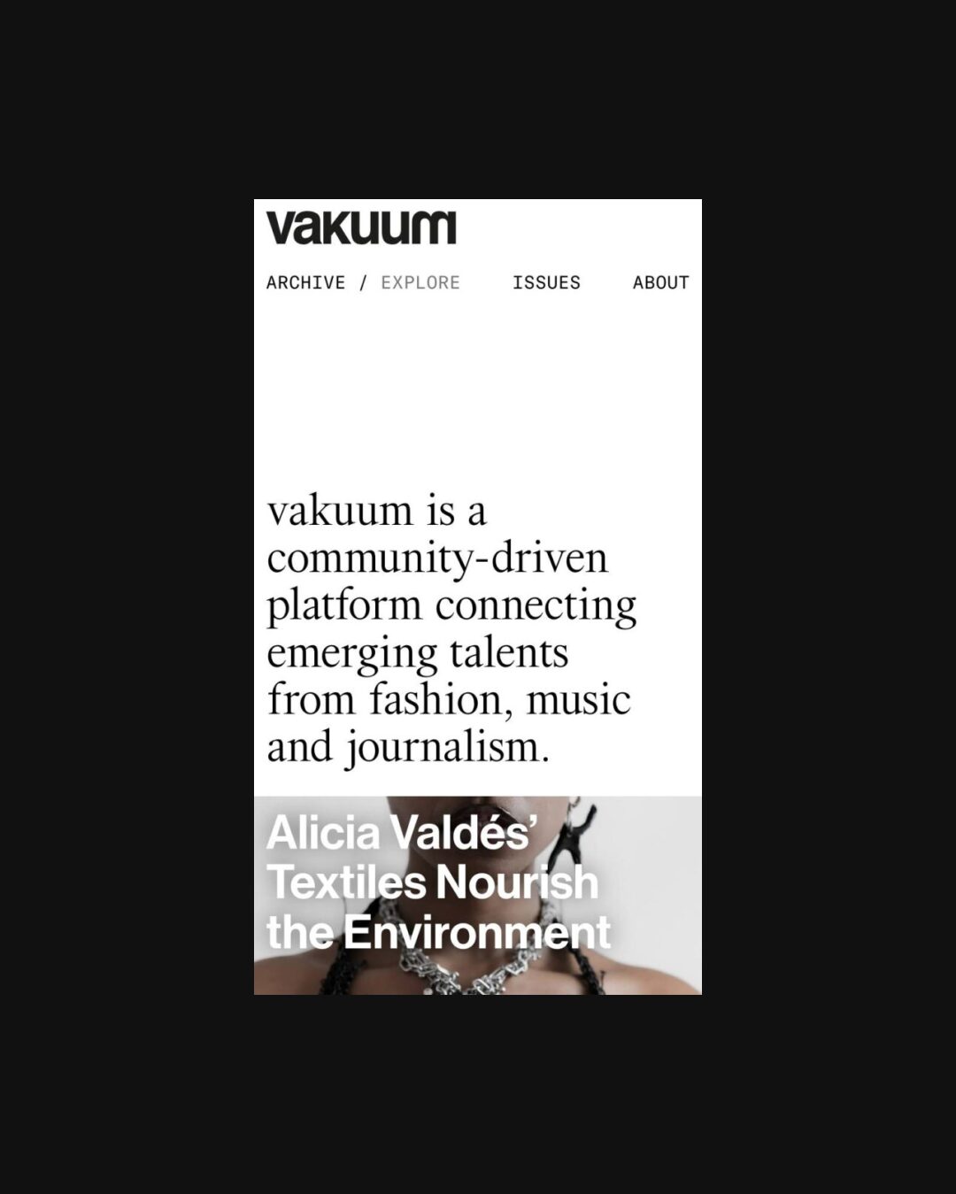 1149 vakuummagazin.com Magazine, Big Typography, Clean, Large Scale, Layered, Light, Mixed Style Typefaces, Mono Typeface, Overlay Containers, Sans Serif Typeface, Serif Typeface, White Space, Black, White, Germany. Design: DAMK. Development: DAMK. (24-04-2025) ←Close