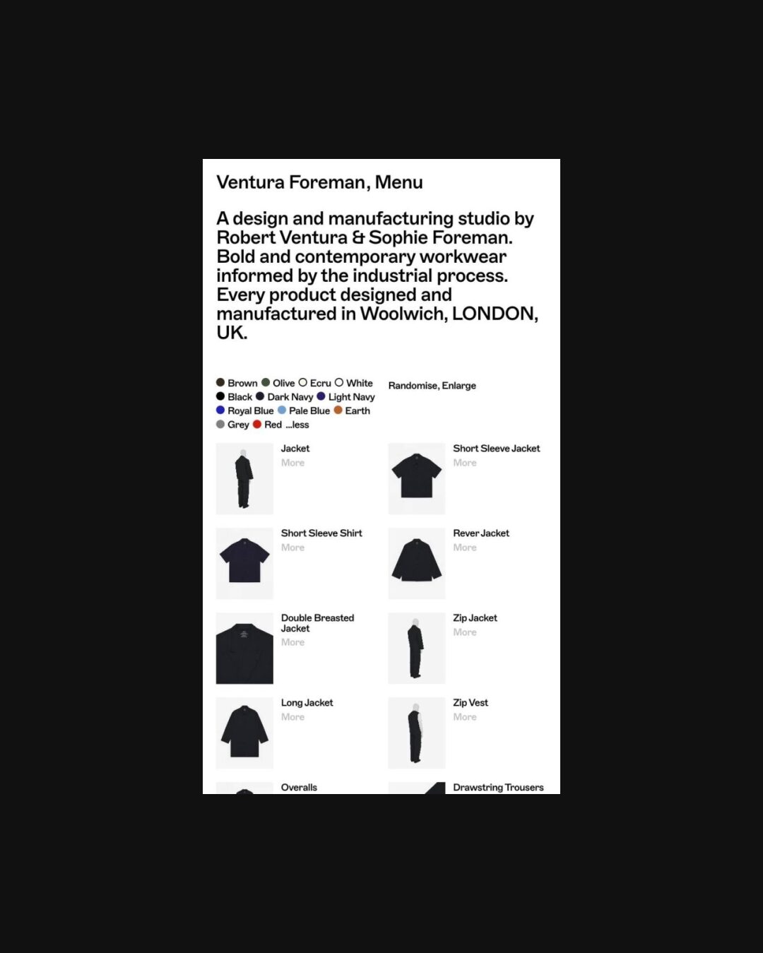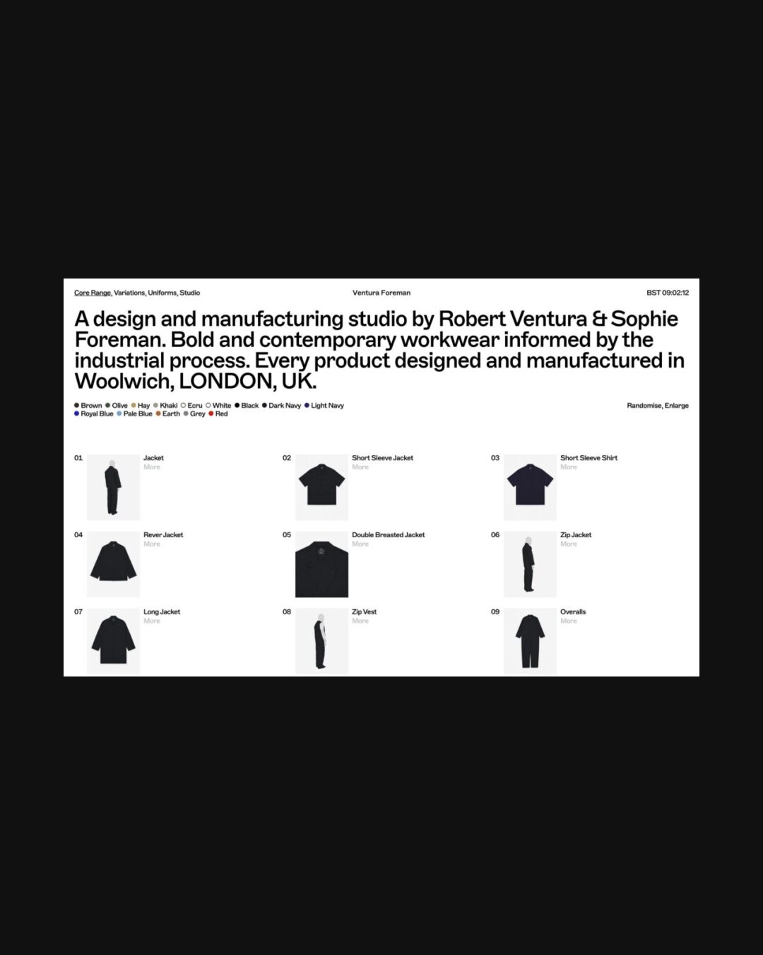 1324 venturaforeman.com Workware, Big Typography, Bright, Brutalist, Clean, Grid, Large Scale, Light, List, Minimal, Sans Serif Typeface, Technical, White Space, Black, White, United Kingdom. Design: Studio Blackburn. Development: David Holland. (03-04-2026) ←Close