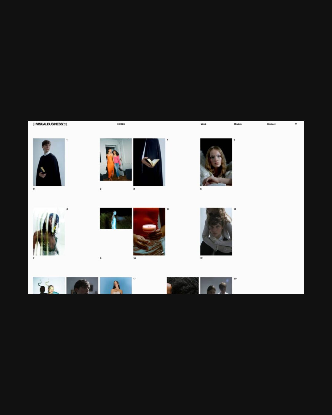 1132 vvisual.biz Production, Animations, Asymmetrical Grid, Bold, Clean, Grid, Large Scale, Light, Minimal, Sans Serif Typeface, Simple, Small Typography, White Space, Black, White, Italy, Spain, USA. Design: Federico Valla. Development: Federico Valla. (31-03-2025) ←Close
