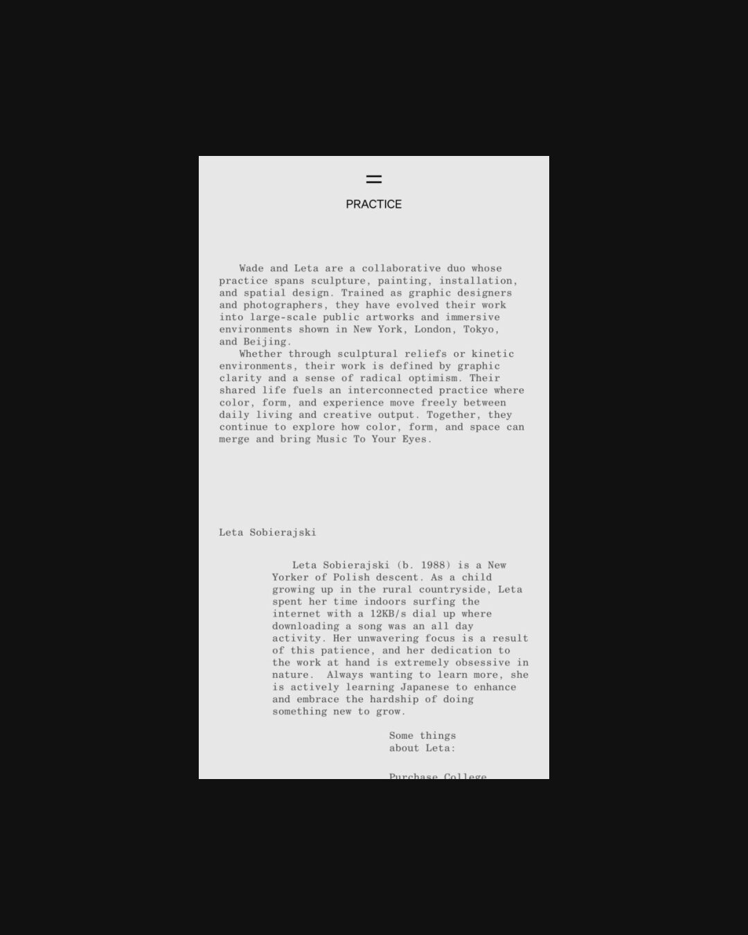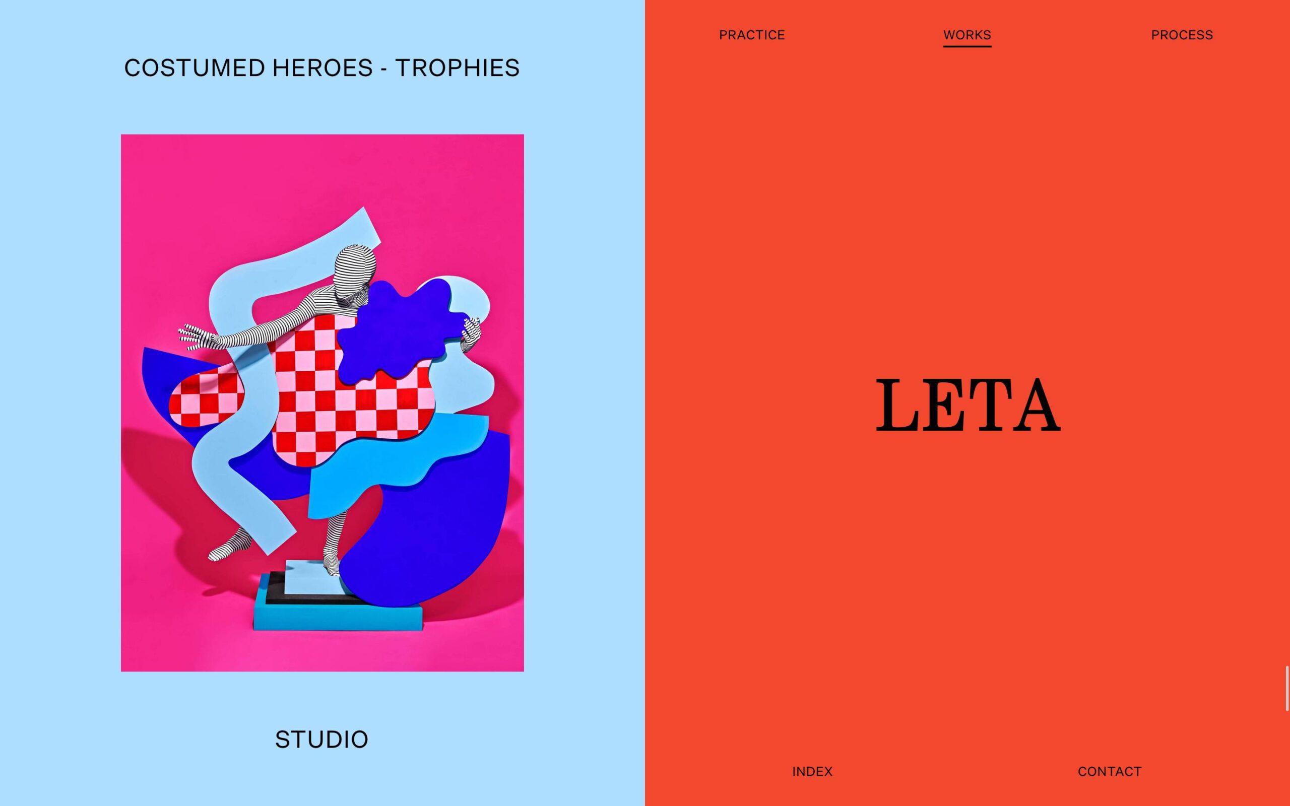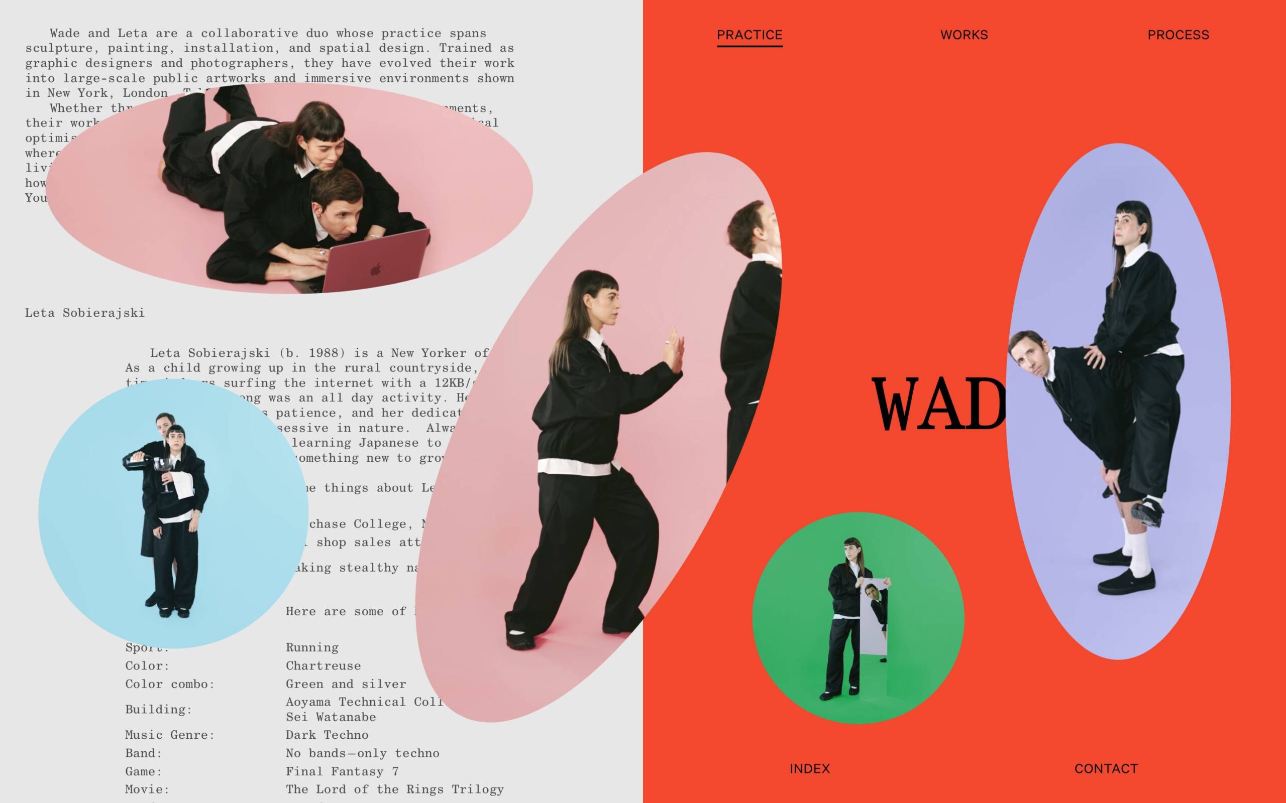 1321 wadeandleta.com Art, Big Title, Colorful, Creative Layout, Editorial, Grid, Large Scale, Layered, Mixed Style Typefaces, Overlay Containers, Playful, Shapes, Split Scroll, White Space, Aquamarine, Orange, USA. Design: Sons & Co.. Development: Sons & Co.. (17-12-2025) ←Close