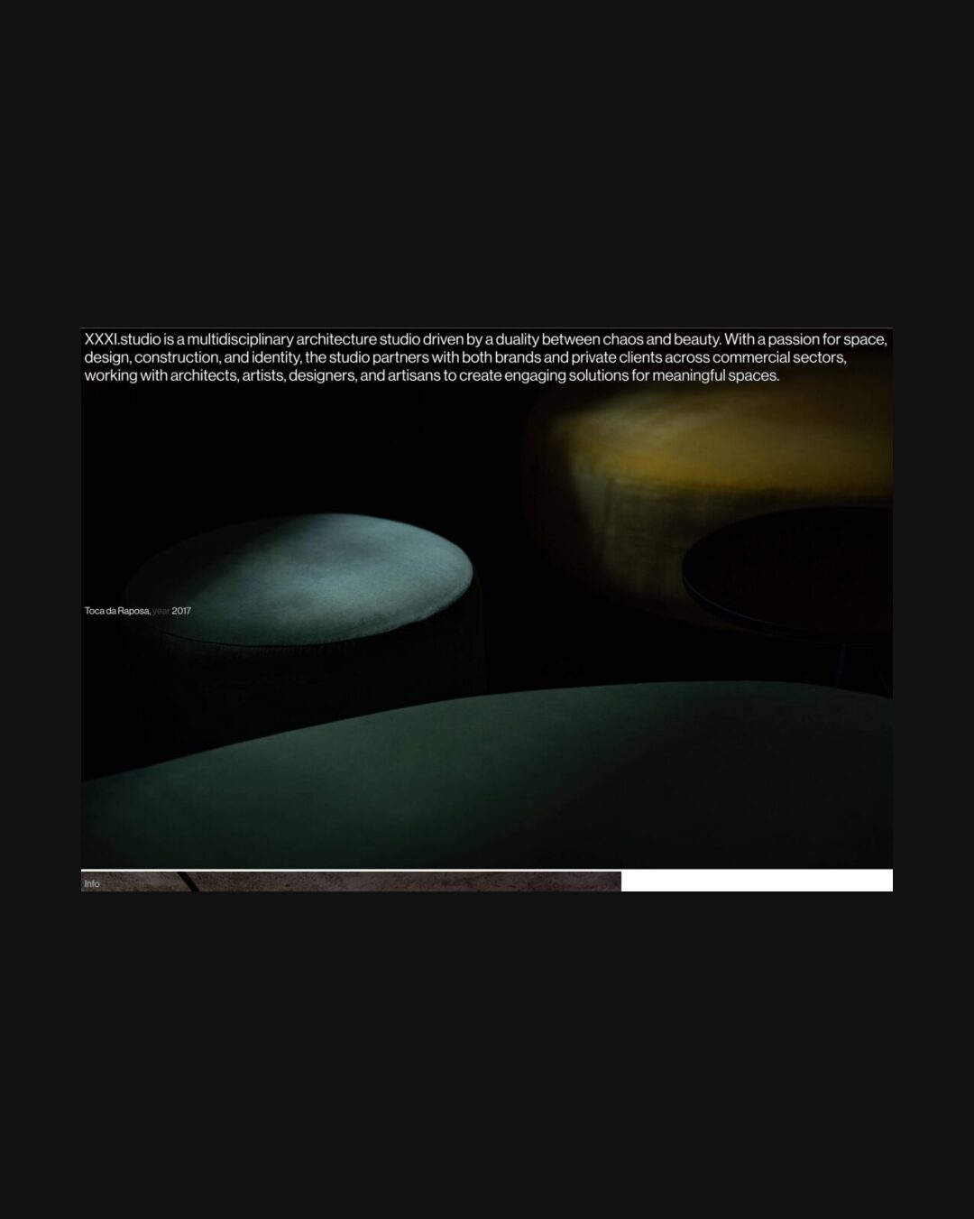 0770 xxxi.studio Architecture, Asymmetrical Grid, Big Typography, Brutalist, Grid, Large Scale, Light, Scroll Events, White Space, Black, Portugal. Design: s74100. Development: s74100. (08-12-2023) ←Close
